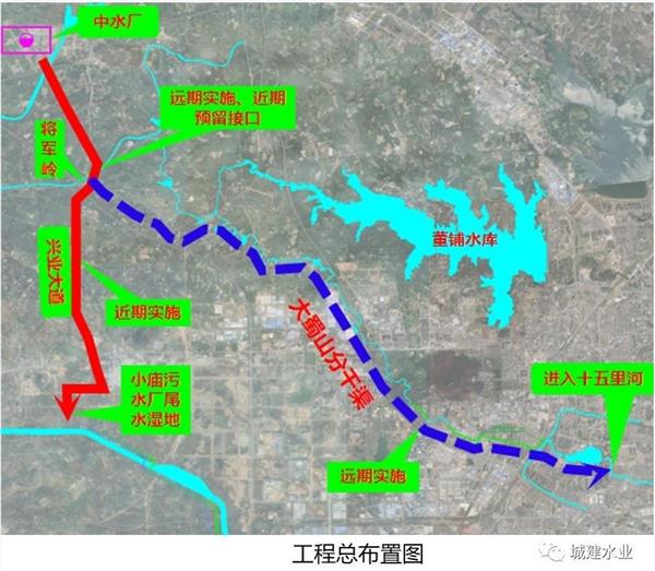 經(jīng)建設(shè)單位和設(shè)計人員多次調(diào)研及現(xiàn)場踏勘,擬定了近期將長崗污水處理廠中水輸送至小廟進行再生利用,遠(yuǎn)期將中水輸送至大蜀山干渠提供生態(tài)基流的近遠(yuǎn)期結(jié)合方案,本次近遠(yuǎn)期結(jié)合的方案實施。