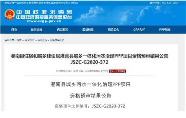 10月13日,灌南縣城鄉(xiāng)一體化污水治理PPP項目發(fā)布資格預(yù)審結(jié)果公告,11方通過資格預(yù)審,中交+碧水源、長江環(huán)保集團(tuán)、葛洲壩等都來了。項目總投資292168萬元。