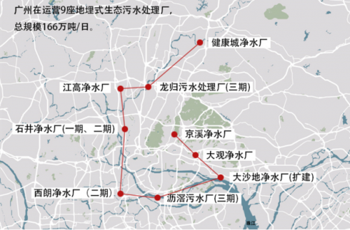 △廣州建成地埋式污水處理廠9座,總產(chǎn)能181萬(wàn)噸日,呈北斗狀分布于珠江兩岸,被譽(yù)為“地下北斗9星”(央廣網(wǎng)發(fā) 廣州市水務(wù)局供圖)