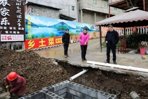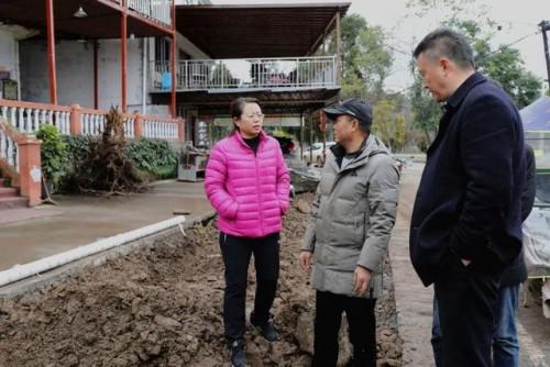 宋莉(右2)現(xiàn)場了解截污干管鋪設情況